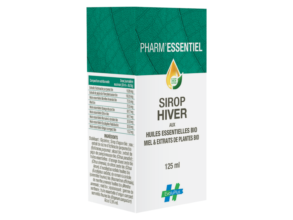 Sirop Hiver aux huiles essentielles Bio, Miel & extraits de plantes Bio. Cette formule est 100% d’origine pure et naturelle.