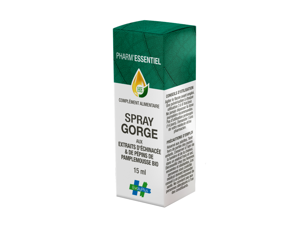 Pharm'Essentiel Spray gorge Bio 15 ml est un complément alimentaire. Ne pas dépasser la dose journalière recommandée. Les compléments alimentaires ne peuvent être utilisés comme substituts d’un régime alimentaire varié et équilibré et d’un mode de vie sain. Pour votre santé, mangez 5 fruits ou légumes par jour. www.mangerbouger.fr