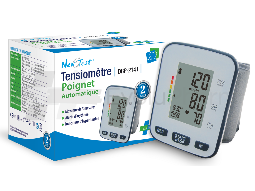 Ce dispositif médical New Test Tensiomètre poignet 3 mesures est un produit de santé réglementé qui porte, au titre de cette réglementation, le marquage CE. Pour toute information, veuillez vous référer aux instructions figurant sur le produit ou la notice. En cas de doute, consulter un spécialiste ou parlez-en à votre pharmacien.