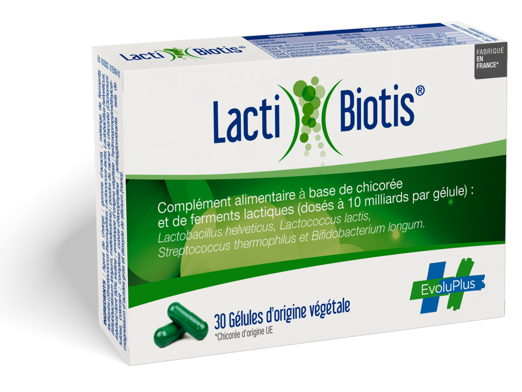Lacti’Biotis® est un complément alimentaire à base de chicorée et de ferments lactiques (dosés à 10 milliards par gélule) :