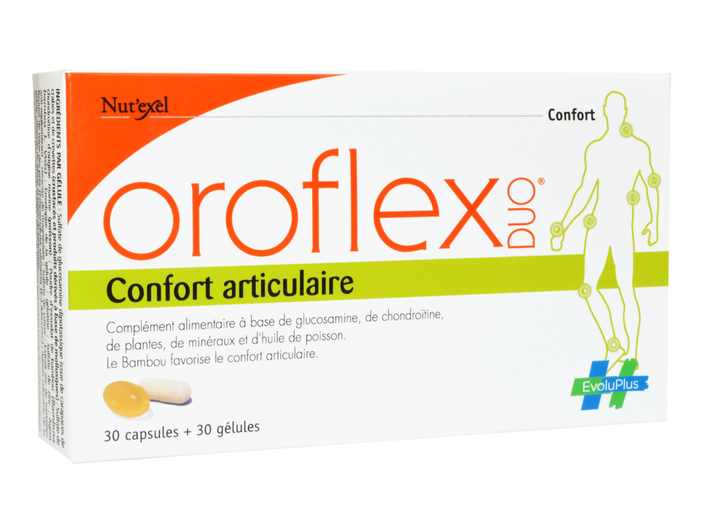- Oroflex DUO® gélule associe le bambou qui favorise le confort articulaire, le zinc qui contribue au maintien d’une ossature normale et le cuivre qui contribue au maintien des tissus conjonctifs normaux.