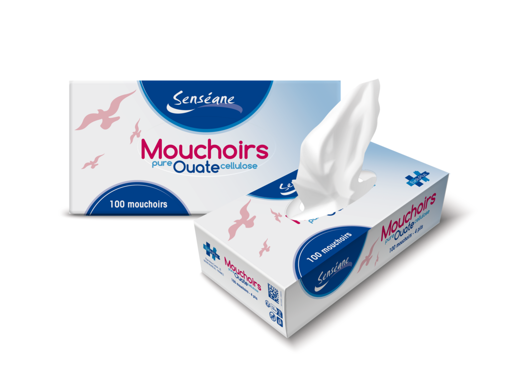 Les mouchoirs Senséane® allient douceur grâce à leur texture en pure ouate de cellulose et praticité avec leur format familial.