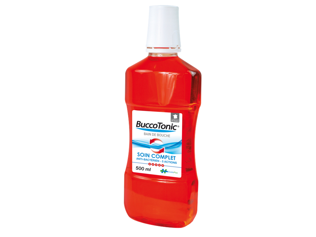 - L’utilisation du bain de bouche BuccoTonic® peut occasionnellement présenter un risque de coloration des prothèses dentaires. Nous vous conseillons un test avant usage.