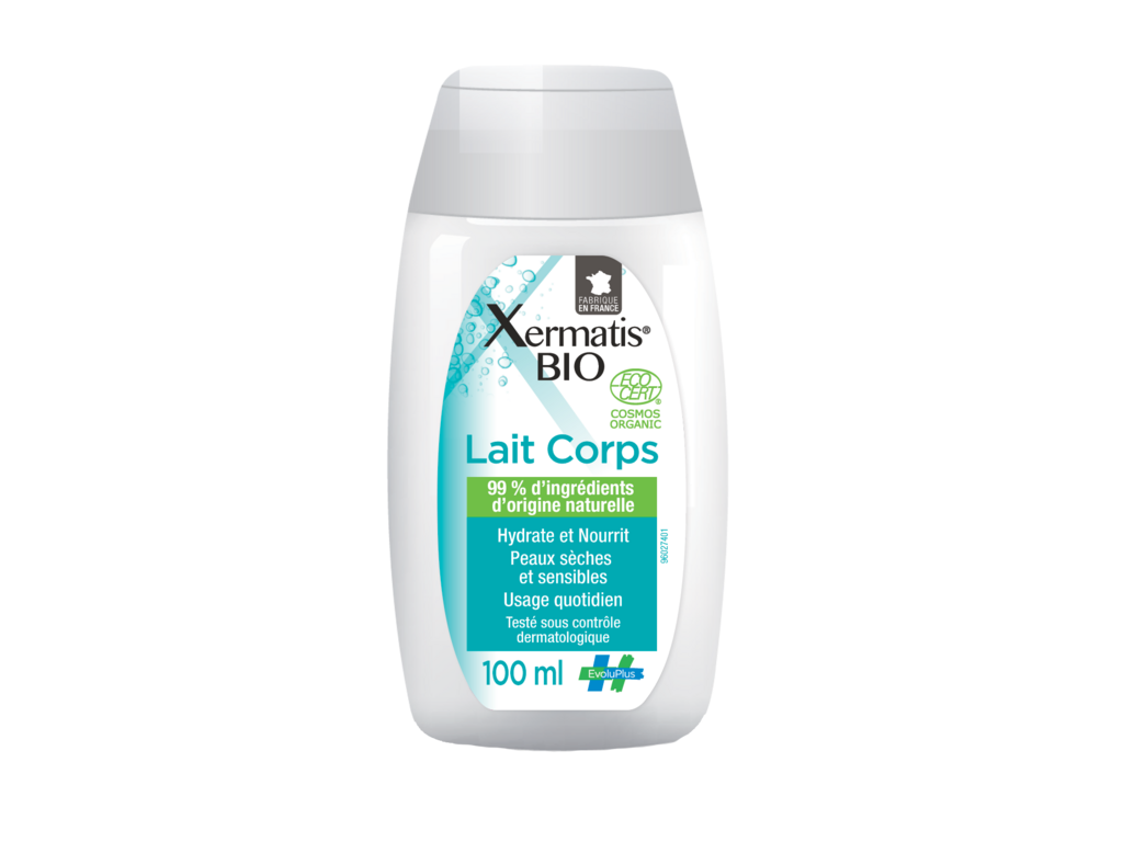 Xermatis Bio lait corps 100 ml est un produit cosmétique à usage externe. Lire les informations figurant sur les produits avant utilisation.