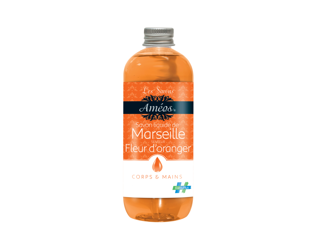 Le Savon liquide de Marseille Améos® senteur Fleur d'oranger est à base d’huile 100% d’origine végétale.