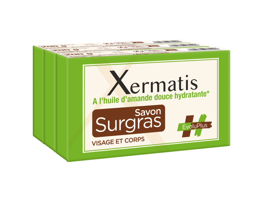 Xermatis Savons surgras 3 x 200 g est un produit cosmétique à usage externe. Lire les informations figurant sur les produits avant utilisation.