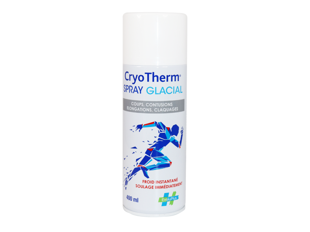 Le spray CRYOTHERM glacial soulage immédiatement grâce à l’action du froid instantané (cryothérapie).
