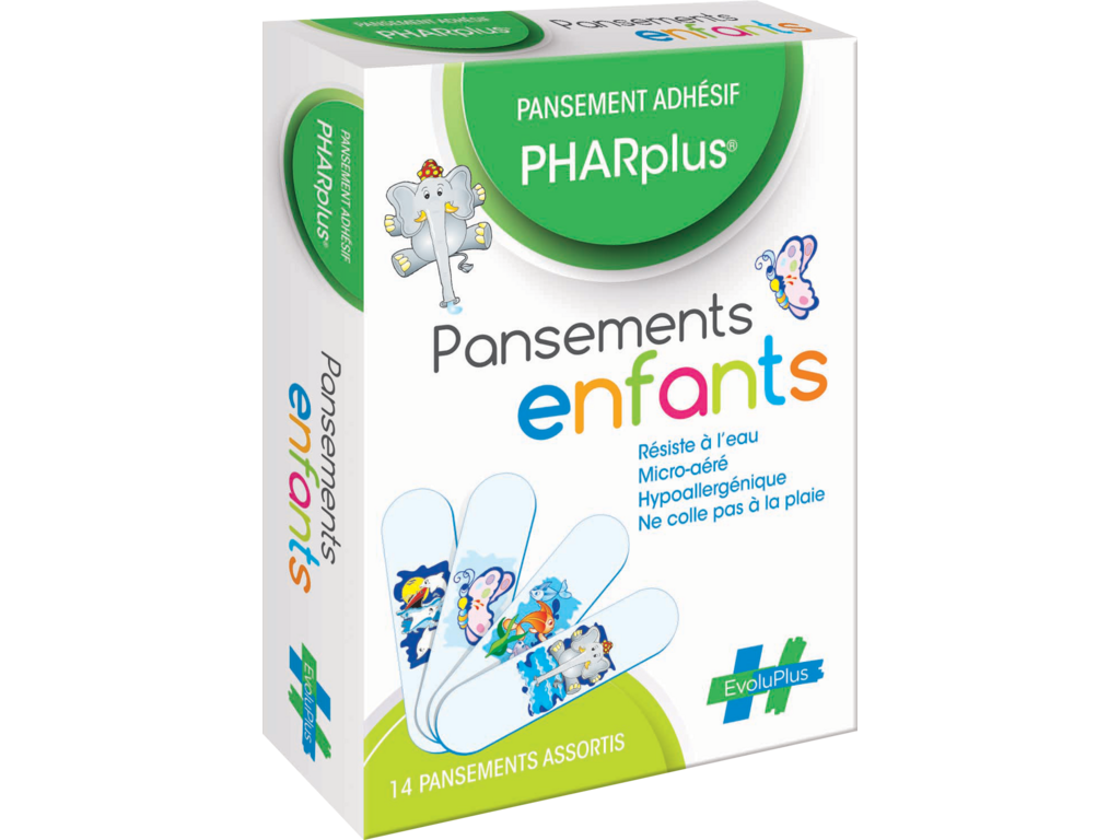 Ce dispositif médical PHARplus® 14 Pansements Enfants est un produit de santé réglementé qui porte, au titre de cette réglementation, le marquage CE. Pour toute information, veuillez vous référer aux instructions figurant sur le produit ou la notice. En cas de doute, consulter un spécialiste ou parlez-en à votre pharmacien.